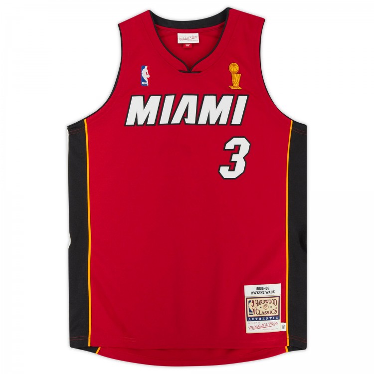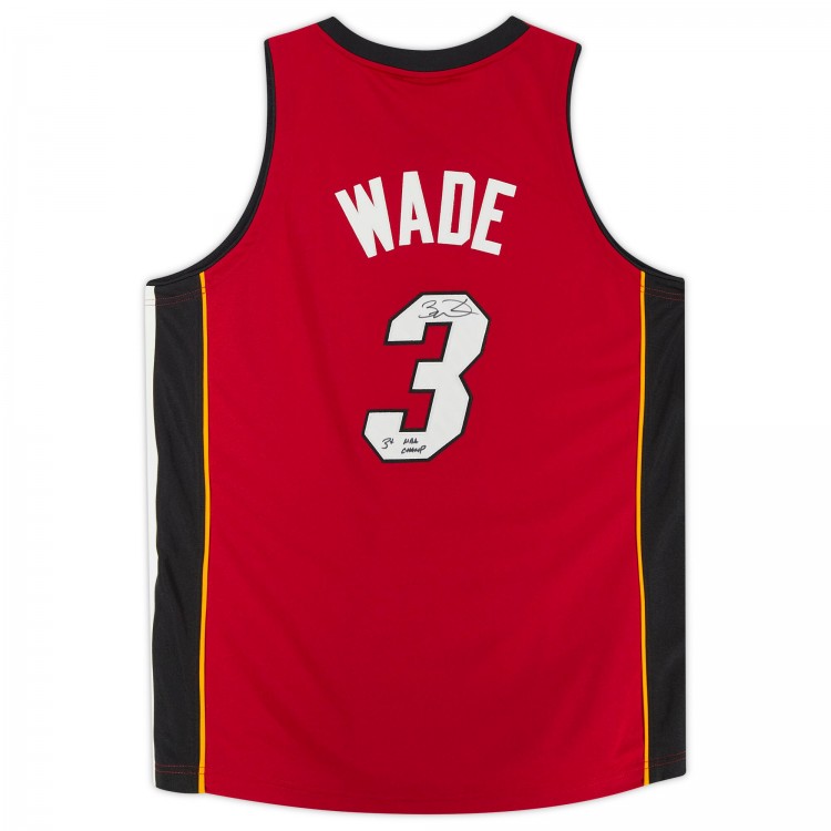 Игровая джерси Autographed Miami Heat Dwyane Wade Fanatics Authentic Red Mitchell & Ness Authentic with 3x NBA Champ Inscription