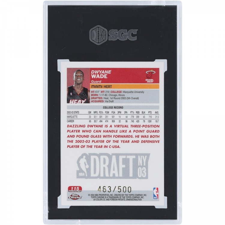 Dwyane Wade Miami Heat 2003-04 Topps Chrome Black Refractor #115 #463/500 SGC Authenticated 8 Rookie Card