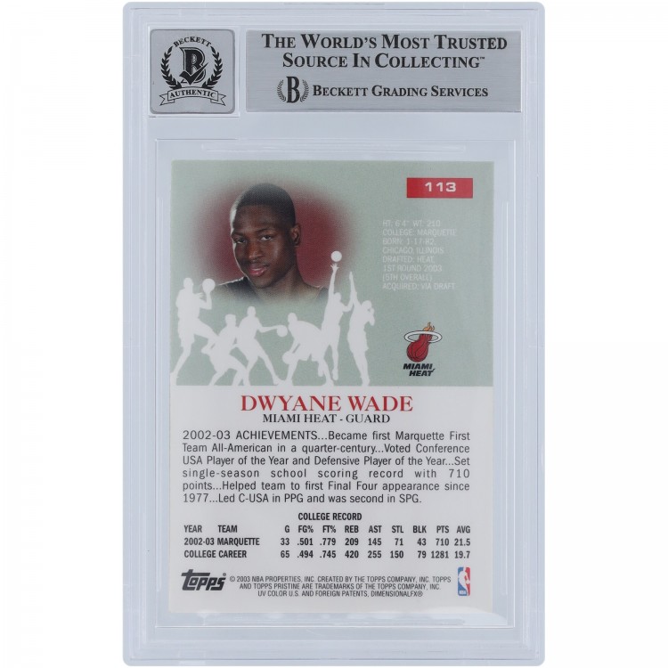 Dwyane Wade Miami Heat Autographed 2003-04 Topps Pristine #113 Beckett Fanatics Witnessed Authenticated 9/10 Rookie Card