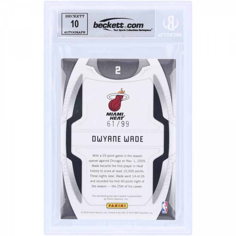 Dwyane Wade Miami Heat Autographed 2009-10 Panini Certified Gold Team GU Relic #2 #/99 Beckett Fanatics Witnessed Authenticated 10 Card