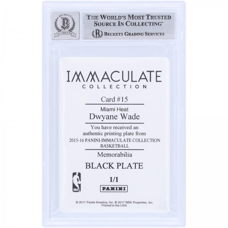 Dwyane Wade Miami Heat Autographed 2015-16 Panini Immaculate Collection Black Printing Plate #15 #1/1 Beckett Fanatics Witnessed Authenticated 10 Card with HOF 23 Inscription