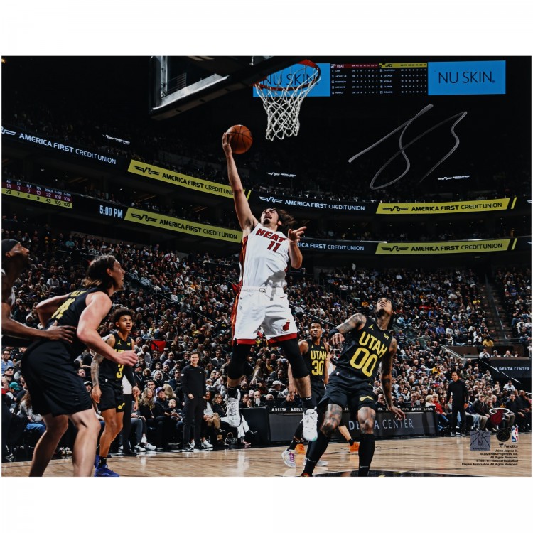 Jaime Jaquez Jr. Miami Heat Autographed Fanatics Authentic 16 x 20 Layup vs Utah Jazz Photograph