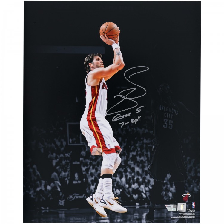 Mike Miller Miami Heat Autographed Fanatics Authentic 16 x 20 2012 NBA Finals Game 5 Shot Vs. Oklahoma City Thunder Spotlight Photograph with Game 5, 7-3 PT Inscription