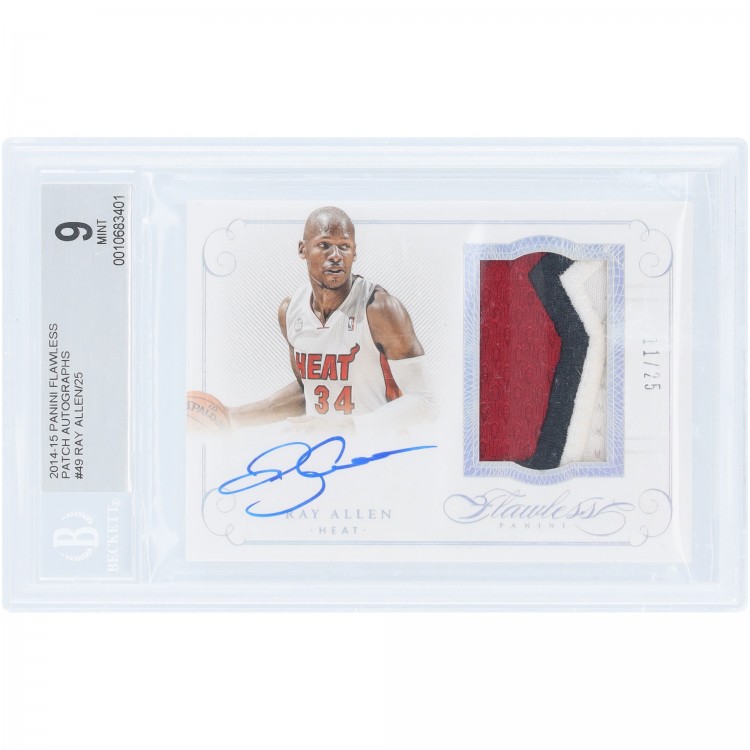 Ray Allen Miami Heat Autographed 2014-15 Panini Flawless Tri-Color Game-Used Relic #PA-RA #11/25 BGS Authenticated 9/10 Card