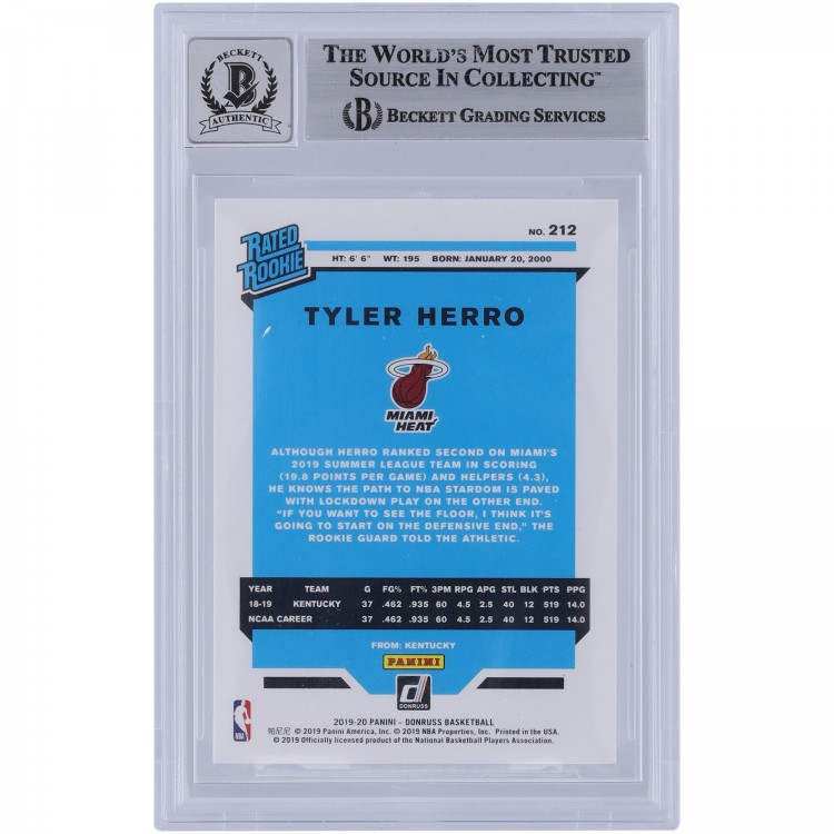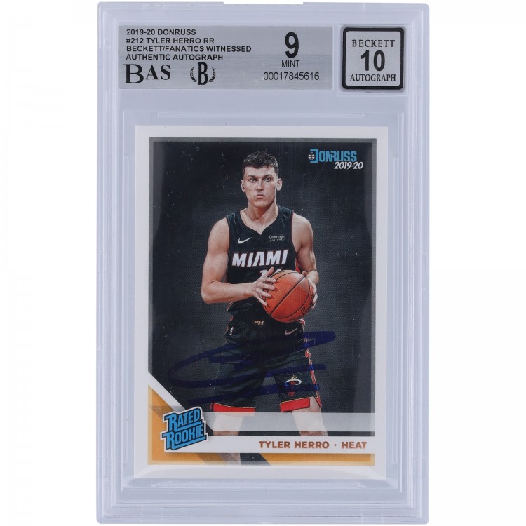 Tyler Herro Miami Heat Autographed 2019-20 Panini Donruss #212 Beckett Fanatics Witnessed Authenticated 9/10 Rookie Card