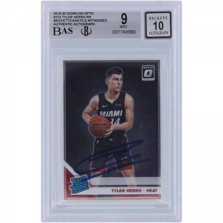 Tyler Herro Miami Heat Autographed 2019-20 Panini Donruss Optic #172 Beckett Fanatics Witnessed Authenticated 9/10 Rookie Card