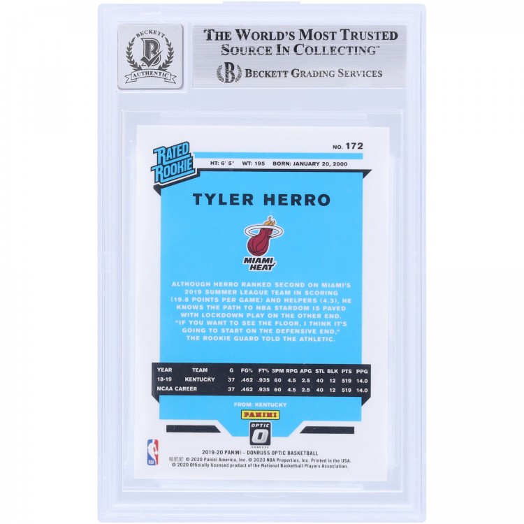 Tyler Herro Miami Heat Autographed 2019-20 Panini Donruss Optic Rated Rookie #172 Beckett Fanatics Witnessed Authenticated 10 Rookie Card