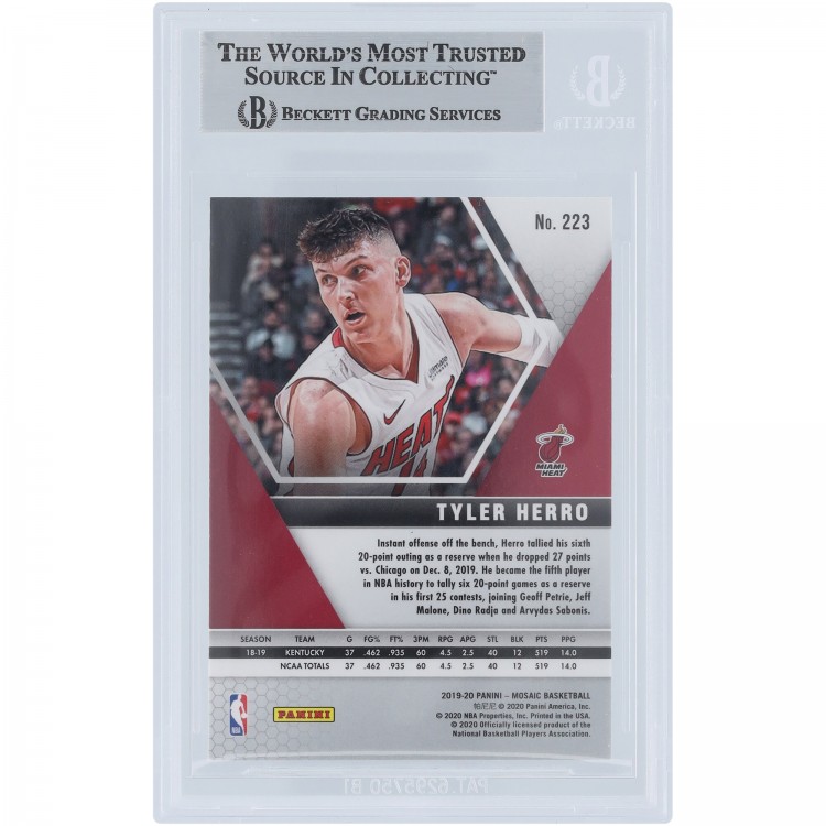 Tyler Herro Miami Heat Autographed 2019-20 Panini Mosaic #223 Beckett Fanatics Witnessed Authenticated Rookie Card