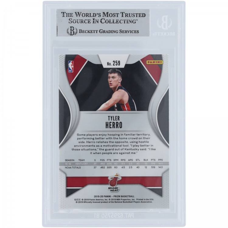 Tyler Herro Miami Heat Autographed 2019-20 Panini Prizm #259 Beckett Fanatics Witnessed Authenticated Rookie Card