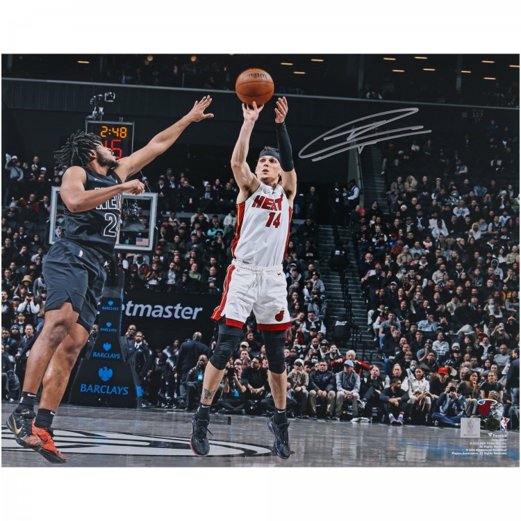 Tyler Herro Miami Heat Autographed Fanatics Authentic 16 x 20 Shooting vs. Brooklyn Nets Photograph