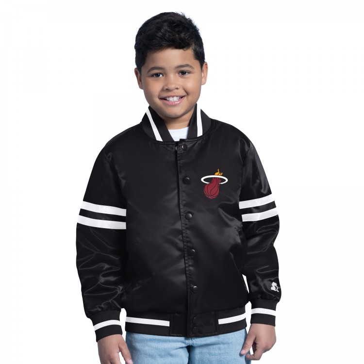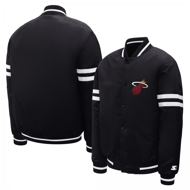 Подростковая Miami Heat Starter Black Satin Full-Snap Varsity Jacket