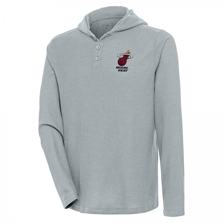 Miami Heat Antigua Gray Strong Hold Long Sleeve Henley Hoodie T-Shirt