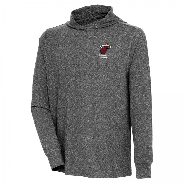 Miami Heat Antigua Heather Black Saga Long Sleeve Hoodie T-Shirt