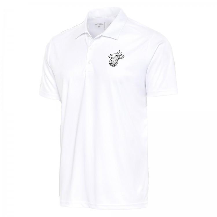 Miami Heat Antigua White Metallic Logo Tribute Desert Dry Polo