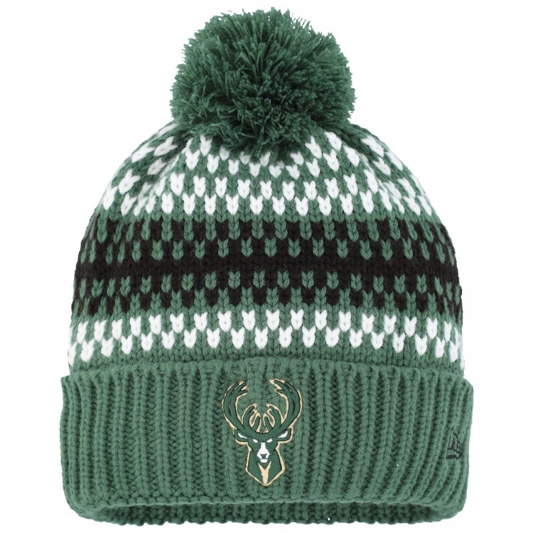 Шапка с помпоном Milwaukee Bucks New Era Girls Youth Cozy Cuffed Knit - Hunter Green