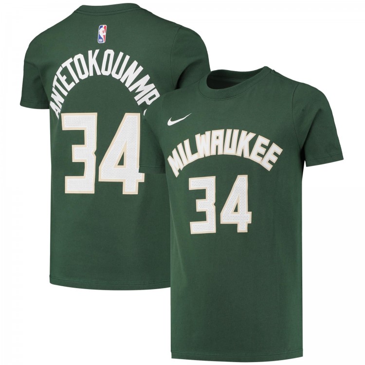 Именная футболка Giannis Antetokounmpo Milwaukee Bucks Nike Youth Logo Performance - Hunter Green