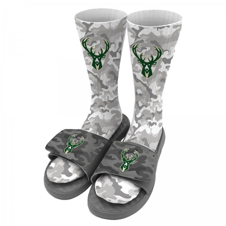 Носки и шлепки Milwaukee Bucks ISlide Youth Camo - Gray