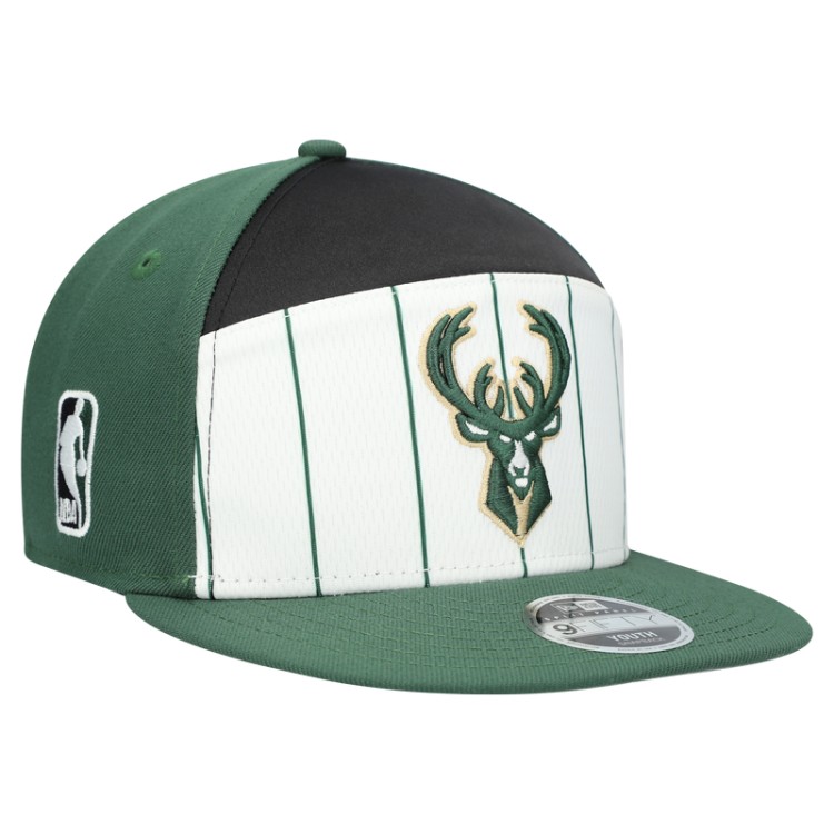 Подростковая Milwaukee Bucks New Era White/Hunter Green 2025 NBA Tip Off Split Panel 9FIFTY Snapback Hat