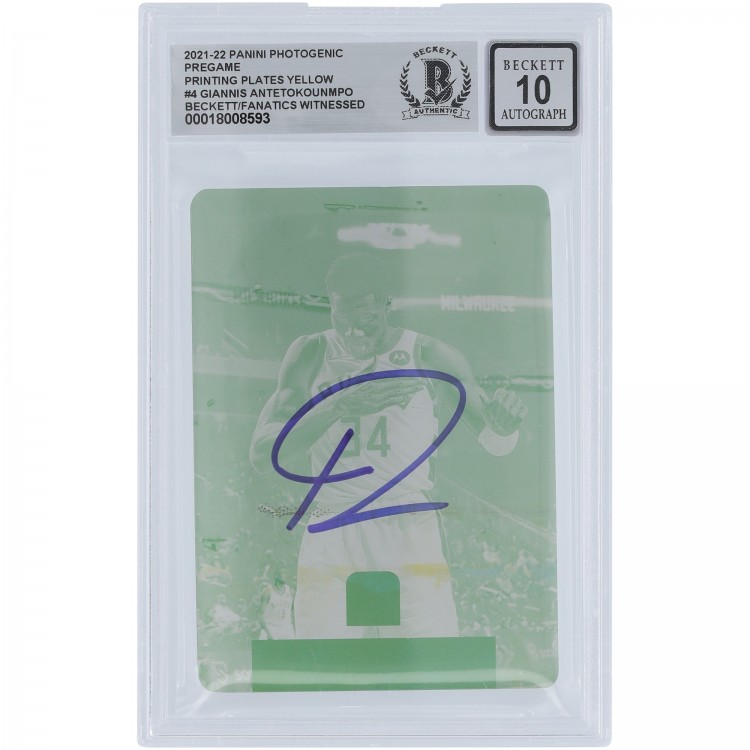 Giannis Antetokounmpo Milwaukee Bucks Autographed 2021-22 Panini Photogenic Yellow Printing Plate #4 #1/1 Beckett Fanatics Witnessed Authenticated 10 Card