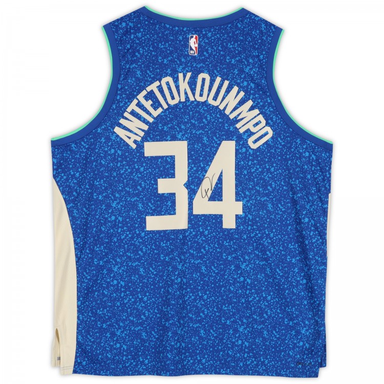Giannis Antetokounmpo Milwaukee Bucks Autographed Fanatics Authentic Royal Nike 2023-24 City Edition Swingman Jersey