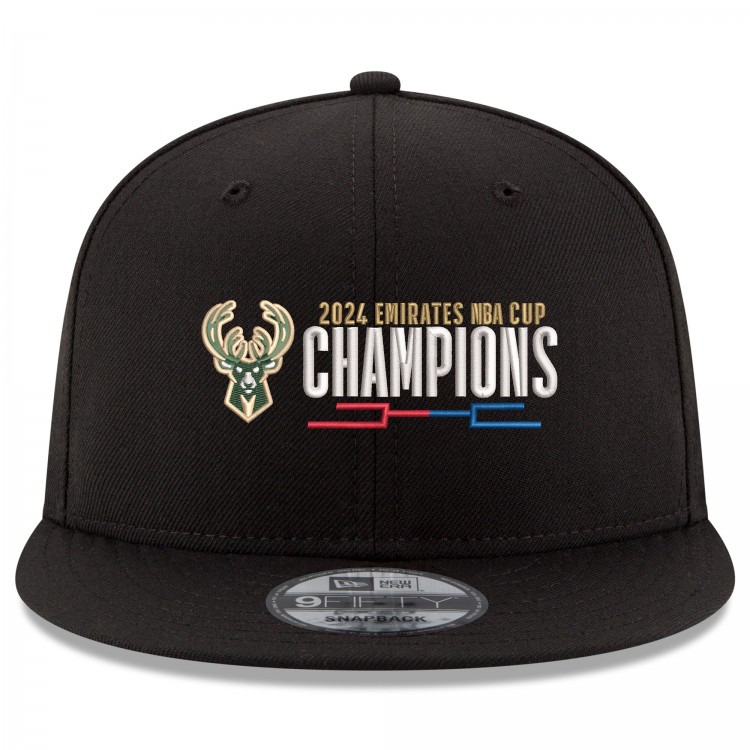 Бейсболка Milwaukee Bucks New Era Black 2024 NBA Cup Champions 9FIFTY Snapback