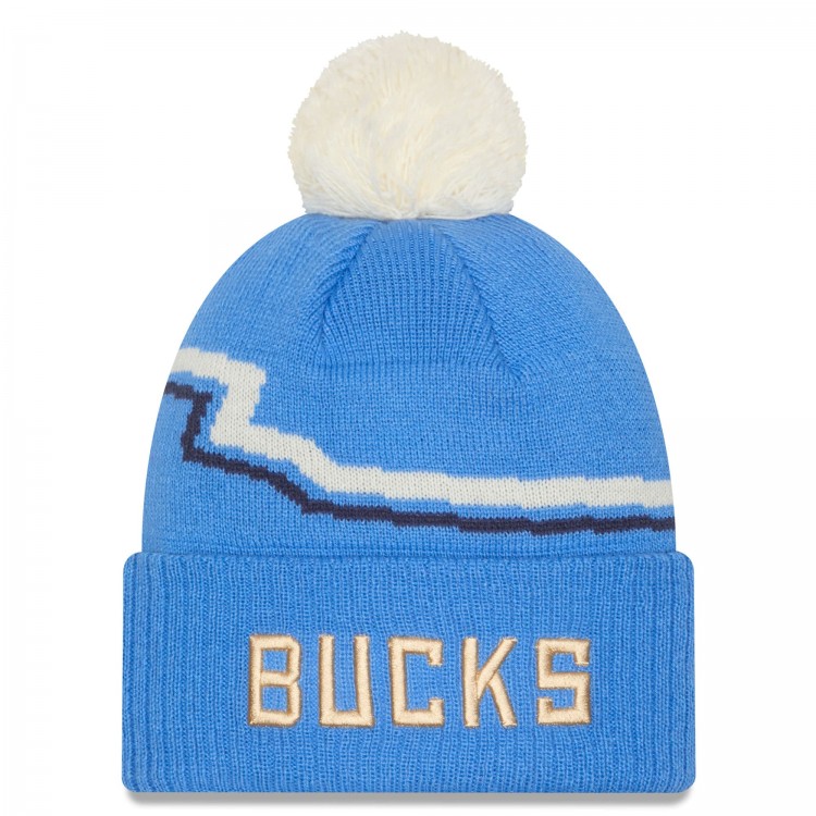 Шапка с помпоном Milwaukee Bucks New Era 2024/25 City Edition Cuffed Knit - Blue