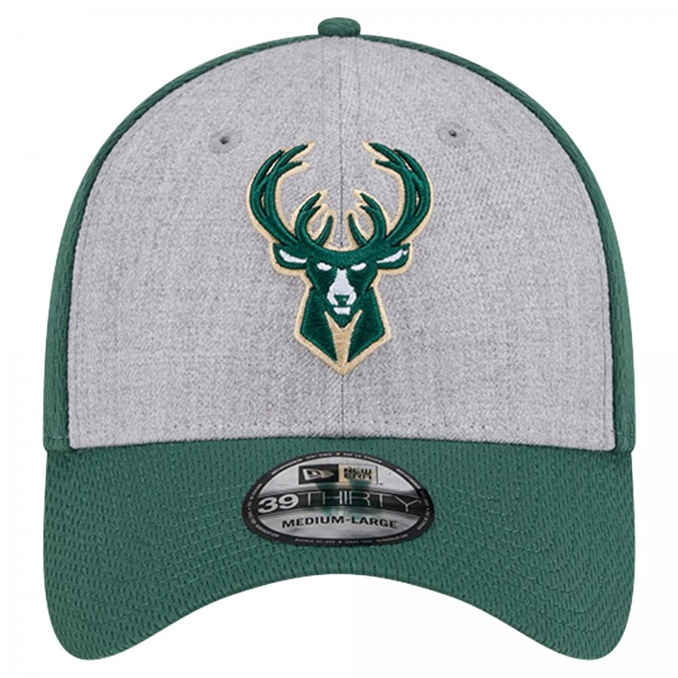 Бейсболка Milwaukee Bucks New Era Heather Gray/Hunter Green Two-Tone 39THIRTY