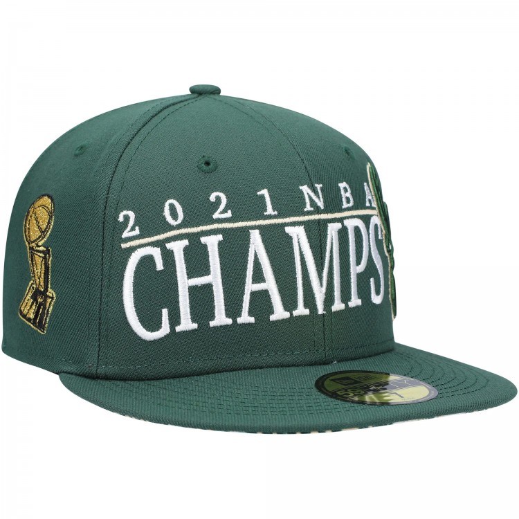 Бейсболка Milwaukee Bucks New Era 2021 NBA Champs Retro Pop Undervisor 59FIFTY - Hunter Green - официальный мерч NBA