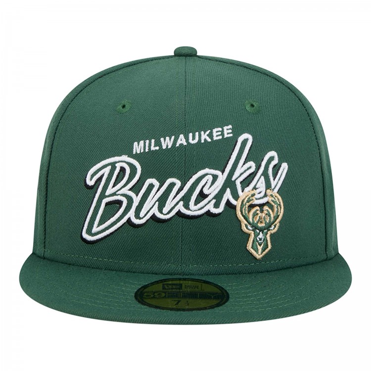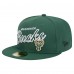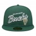 Бейсболка Milwaukee Bucks New Era Hunter Green Sport Night Script Sided 59FIFTY