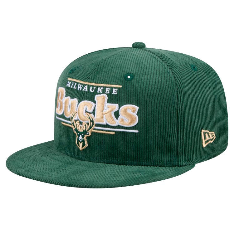 Бейсболка Milwaukee Bucks New Era Hunter Green Throwback Display Corduroy 9FIFTY