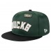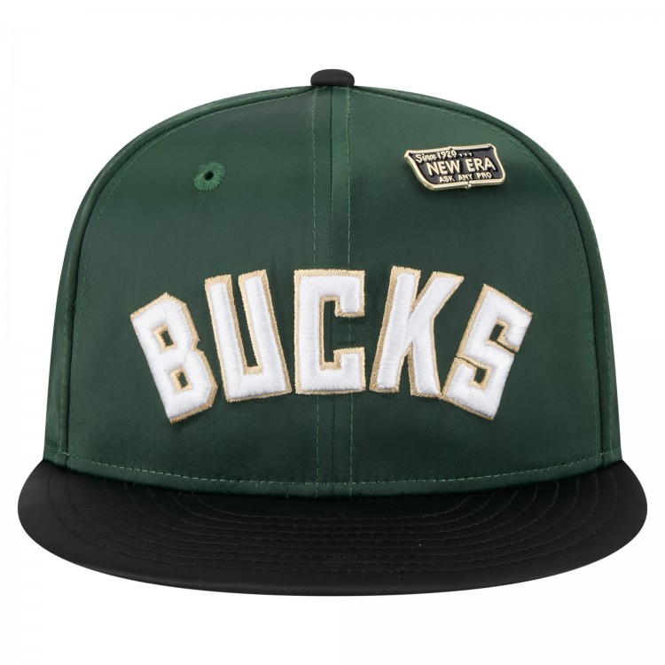 Бейсболка Milwaukee Bucks New Era Hunter Green/Black Throwback Satin Vintage Pin Two-Tone 59FIFTY