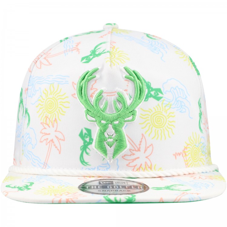 Бейсболка Milwaukee Bucks New Era White Palm Trees and Waves Golfer