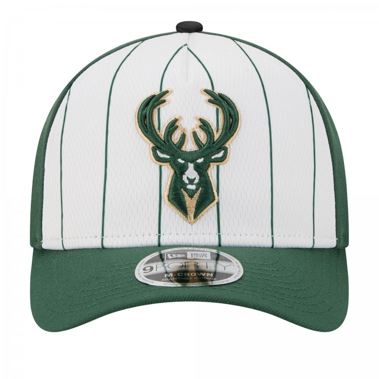 Бейсболка Milwaukee Bucks New Era White/Hunter Green 2025 NBA Tip Off M-Crown A-Frame 9FORTY
