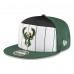 Бейсболка Milwaukee Bucks New Era White/Hunter Green 2025 NBA Tip Off Split Panel 9FIFTY Snapback