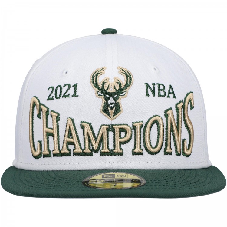 Бейсболка Milwaukee Bucks New Era Arch Champs 59FIFTY - White/Hunter Green