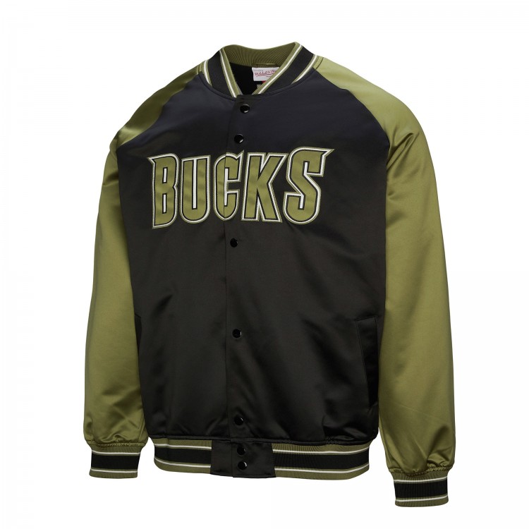Milwaukee Bucks Mitchell & Ness Olive/Black Clutch Satin Raglan Full-Snap Jacket