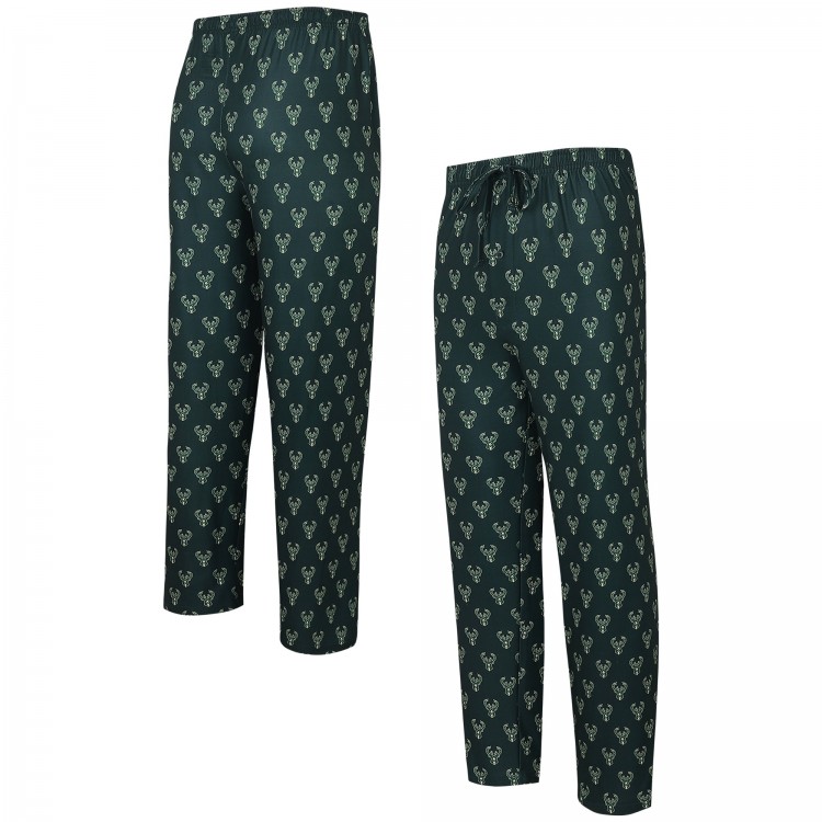 Пижамные штаны Milwaukee Bucks Concepts Sport Allover Logo Print Gauge - Hunter Green
