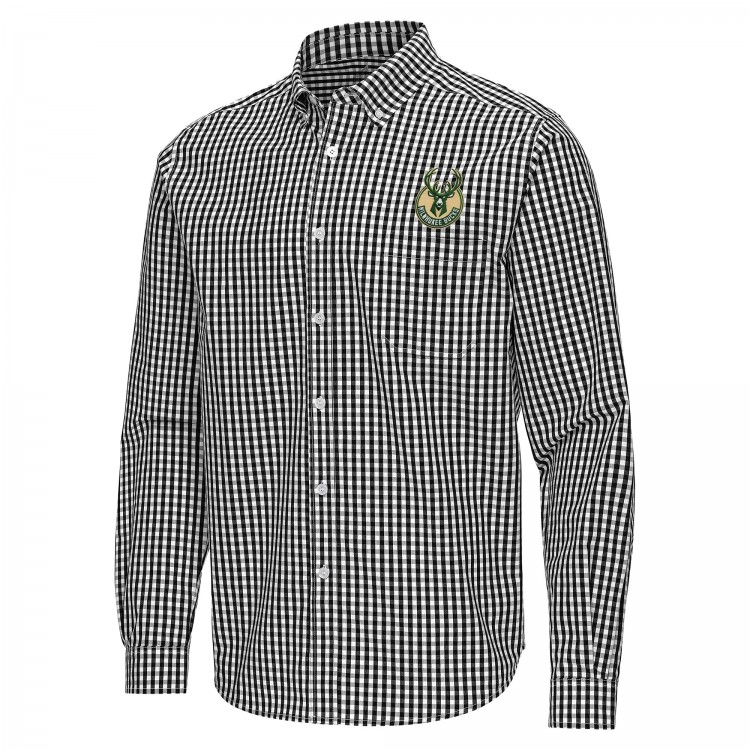 Milwaukee Bucks Antigua Black Ellis Woven Tri-Blend Button-Down Shirt