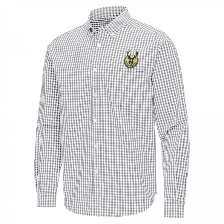 Milwaukee Bucks Antigua Gray Ellis Woven Tri-Blend Button-Down Shirt
