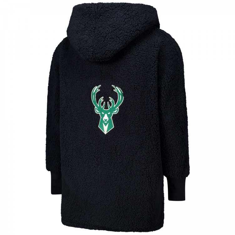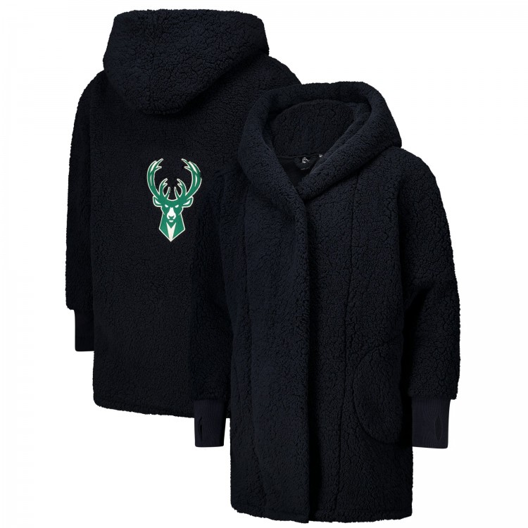 Unisex Milwaukee Bucks The Best Lounger in the World By Jill Martin Black Oversized Open-Front Hoodie Sweater