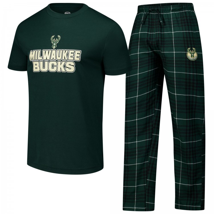 Milwaukee Bucks Concepts Sport Hunter Green/Black Vector Top & Flannel Pants Sleep Set