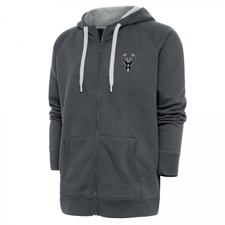 Milwaukee Bucks Antigua Charcoal Metallic Logo Victory Raglan Full-Zip Hoodie