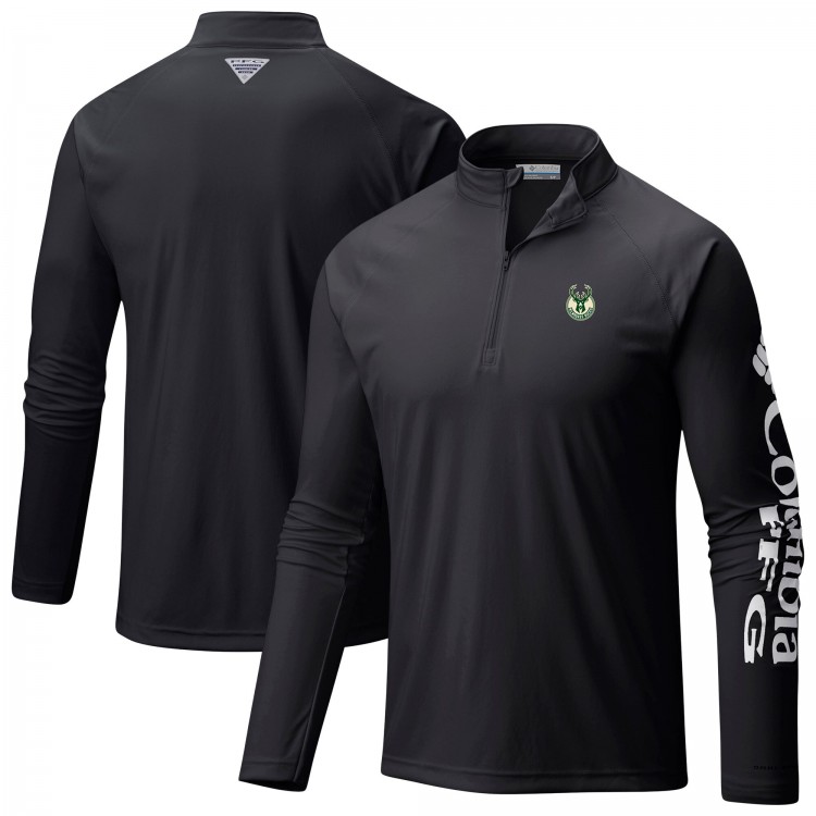 Milwaukee Bucks Columbia Black PFG Terminal Tackle Quarter-Zip Top