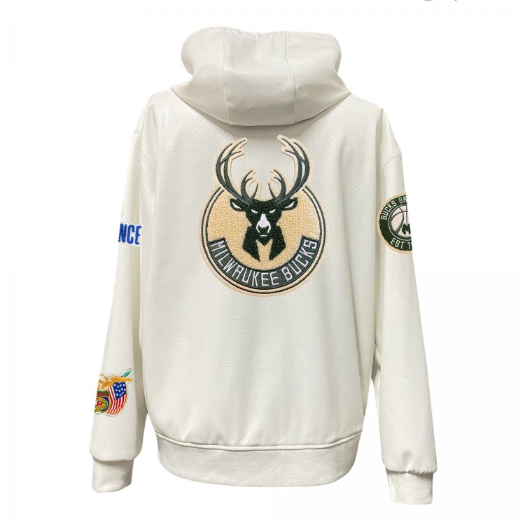 Milwaukee Bucks Jeff Hamilton White Vegan Leather Full-Zip Hoodie