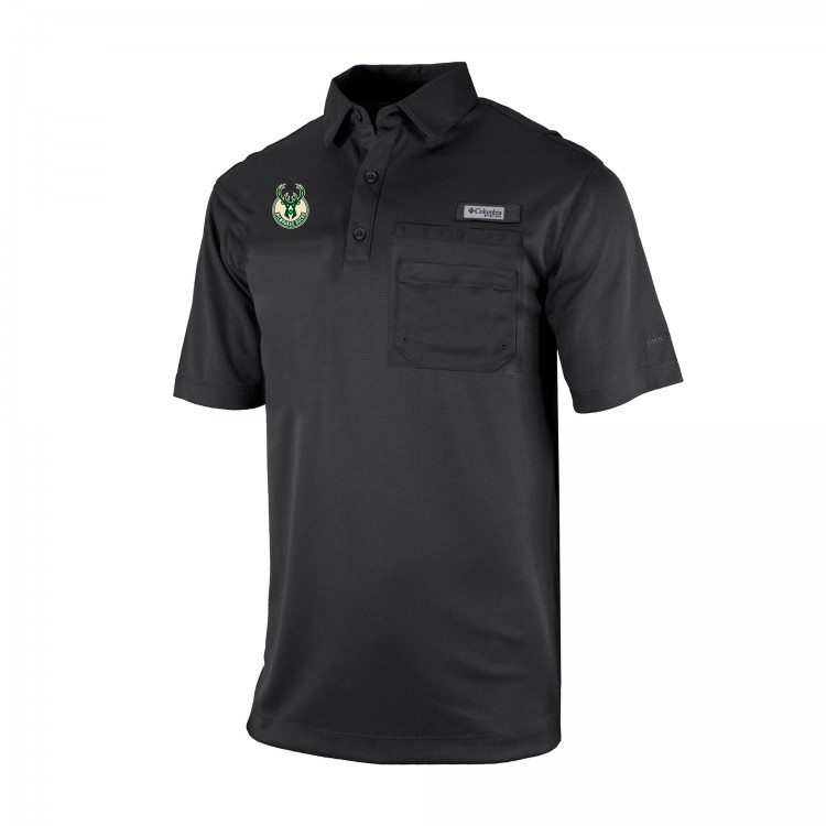 Milwaukee Bucks Columbia Black Omni-Wick Flycaster Pocket Polo