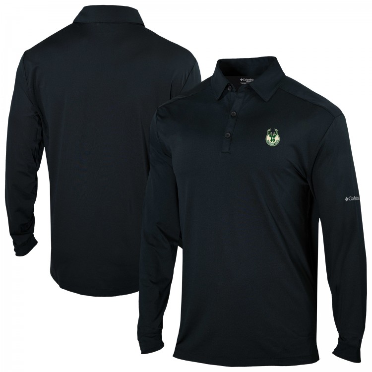 Milwaukee Bucks Columbia Black Omni-Wick Pin High Long Sleeve Polo