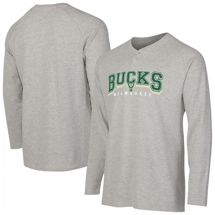 Milwaukee Bucks Concepts Sport Gray Hawthorn Thermal Knit Long Sleeve Henley T-Shirt