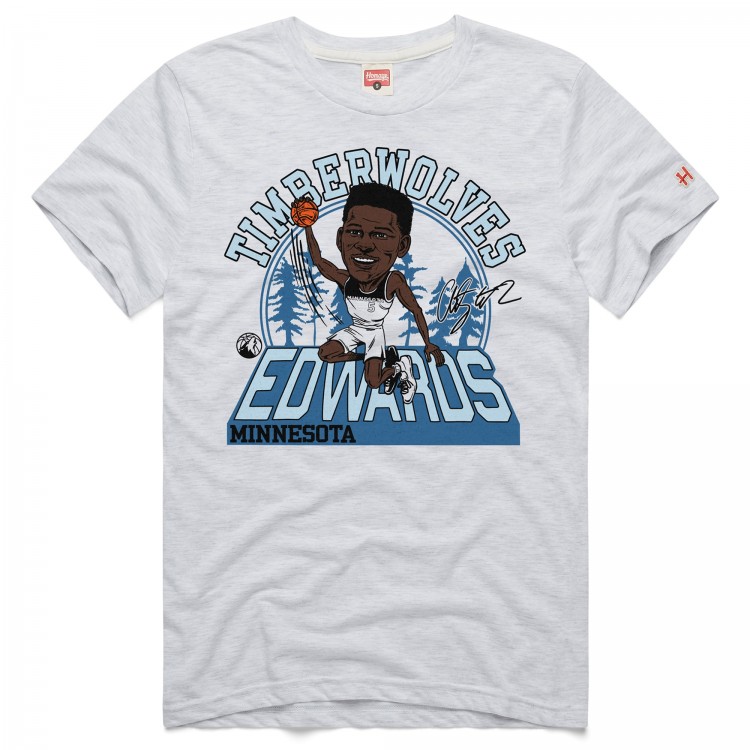 Футболка Anthony Edwards Minnesota Timberwolves Homage Unisex 2024/25 City Edition Caricature Tri-Blend - Ash