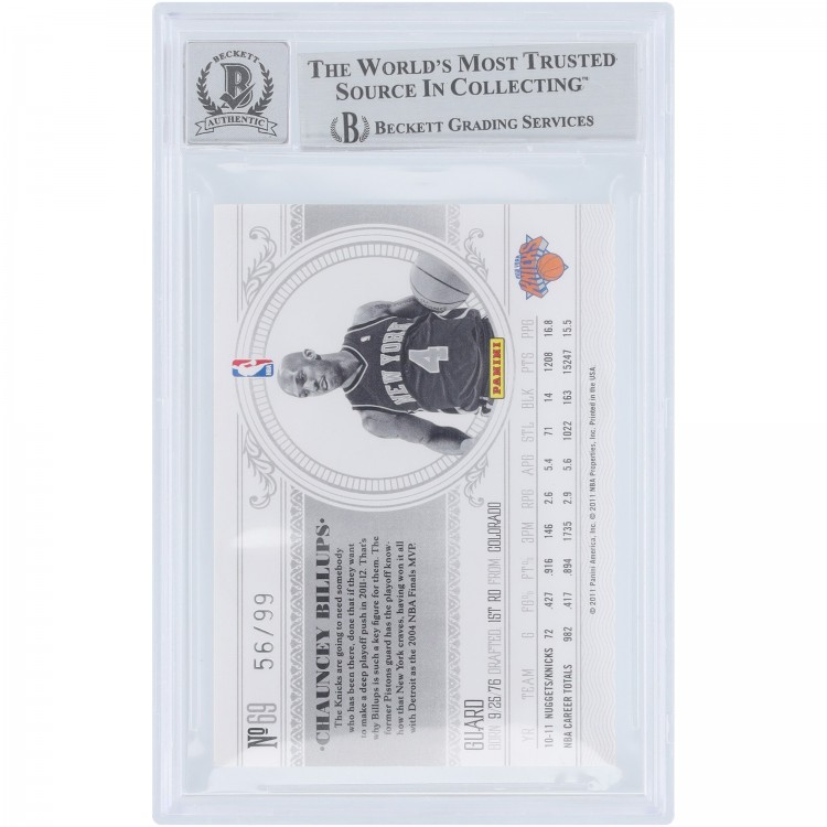 Chauncey Billups New York Knicks Autographed 2010-11 Panini National Treasures #69 #/99 Beckett Fanatics Witnessed Authenticated 9/10 Card