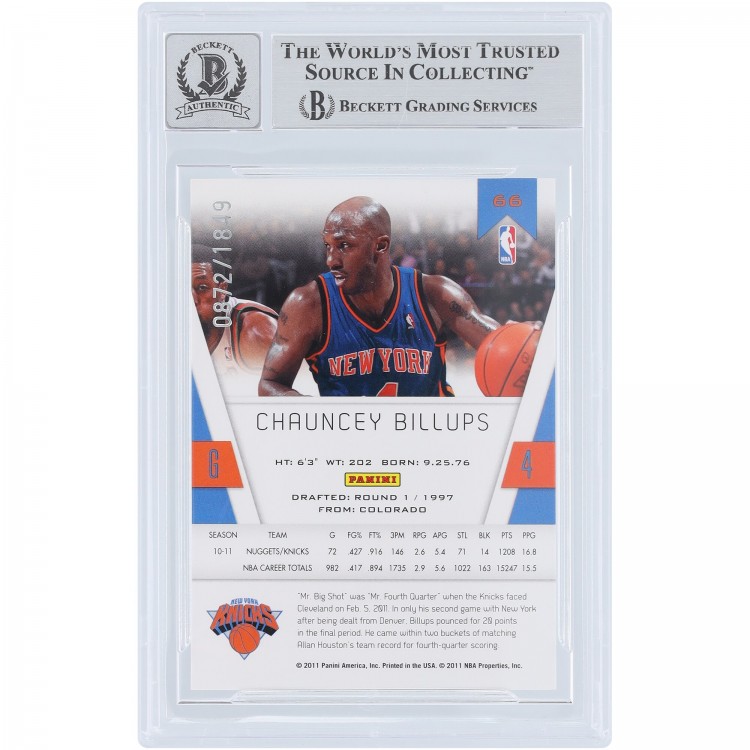 Chauncey Billups New York Knicks Autographed 2010-11 Panini Totally Certified #66 #/1849 Beckett Fanatics Witnessed Authenticated 10 Card